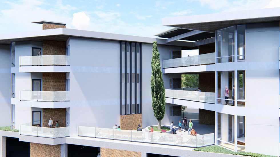 The Roseview Apartments project is envisioned as bringing quality design to affordable multi-family housing to a high-demand region. The neighborhood is mixed-use and mixed character. Semi-industrial and warehouse spaces mixed with low-density residential and commercial uses surround a major healthcare center. The design for Roseview Apartments breaks local precedent by placing 3 levels of living units over a parking and service ground level. A long, narrow lot is planned to maximize footprint by adhering tight to lot line setbacks for structure and using the resulting spatial edges for pedestrian circulation. Vehicular circulation is primarily in and out of a single driveway entrance with turnaround inside the covered parking area, and an emergency loop is accommodated via an easement through the adjacent property. The resulting unit density level leads directly to pro-forma calculations and the affordability factor of the units.